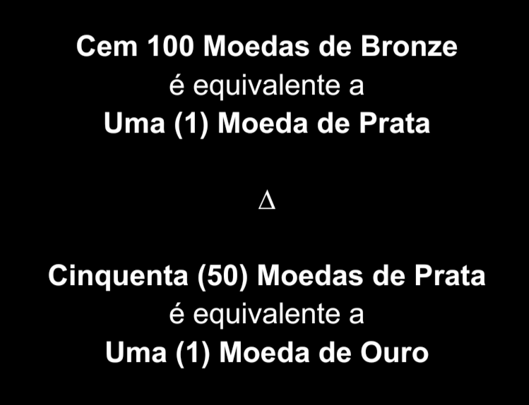 Aqui vocês terão acesso ao sistema monetário (dinheiro/moeda) do RPG, tendo como protagonistas o bronze, a prata e o ouro. Serão através destes que vocês conquistarão tudo o que precisam para deixar seus personagens ainda mais fortes!
